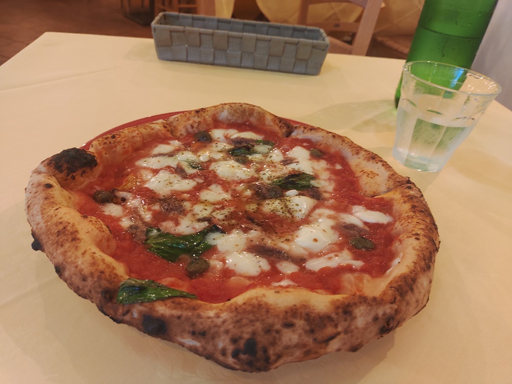 以前はマルゲリータを頼んだけど、今回はロマーナを注文。トマトソースとモッツァレラチーズなどにアンチョビが加わるので塩味が効いている。アンチョビ独特の苦みと香りもアクセントがあってとてもいい。具材はしっとりしていて濃厚。一般的なピザよりも具材の味をしっかり感じさせる。