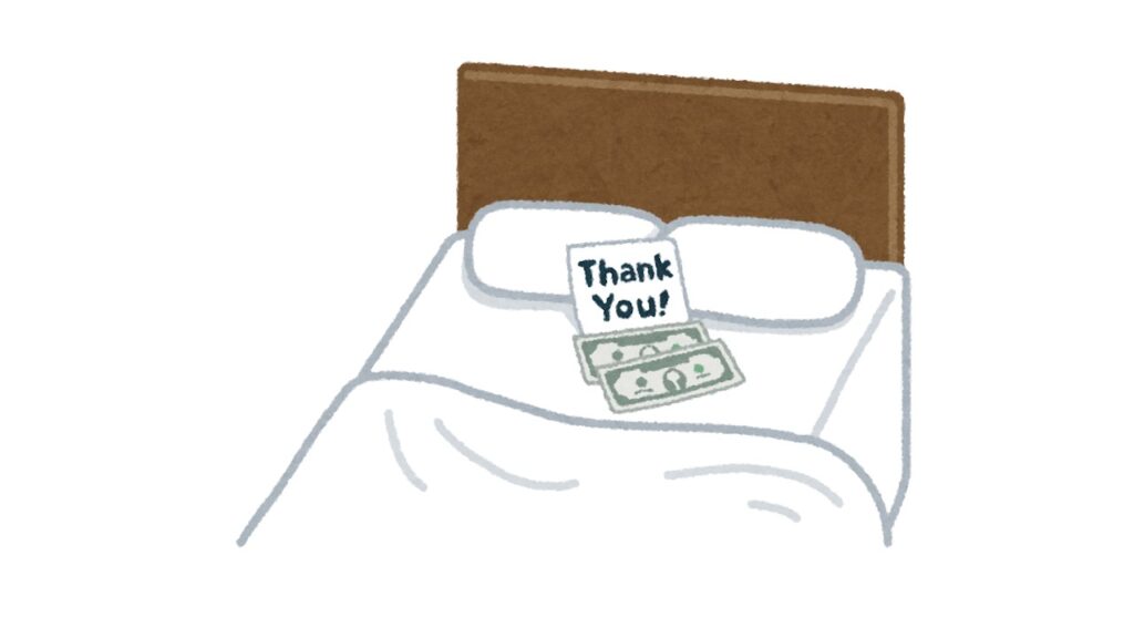 これが面倒ください。レストラン、ホテル、タクシーなどなんでもチップが必要。マクドナルドや小売店など自分がカウンターで受け取る店舗では必要ないが、どこのどんなシーンでもチップが必要だと思っていい。ホテルのベッドメイクやタクシーなどは1~2ドル程度だがレストランでは15~20%ぐらい必要。しかも例えばホテルでベッドメイキングのチップを1セント硬貨でジャラジャラと枕の下に置いても持っていかない。1ドル札で置くか、精々50セント硬貨と25セント硬貨を組み合わせたぐらい。