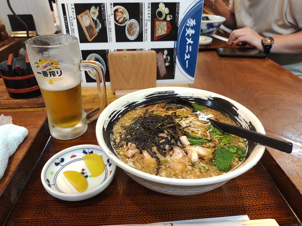 これが鳥中華そば。やや太めの麺に和風だしが効いている。いわゆる中華そばと違って和の雰囲気。普通でこのサイズ感。本当はそばも食べたかった…