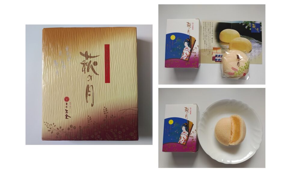 銘菓「萩の月」。今では全国にこれとよく似たお菓子があるが、やっぱり本家はこれ。カステラの適度な柔らかさと卵風味のカスタードクリームがよく合う