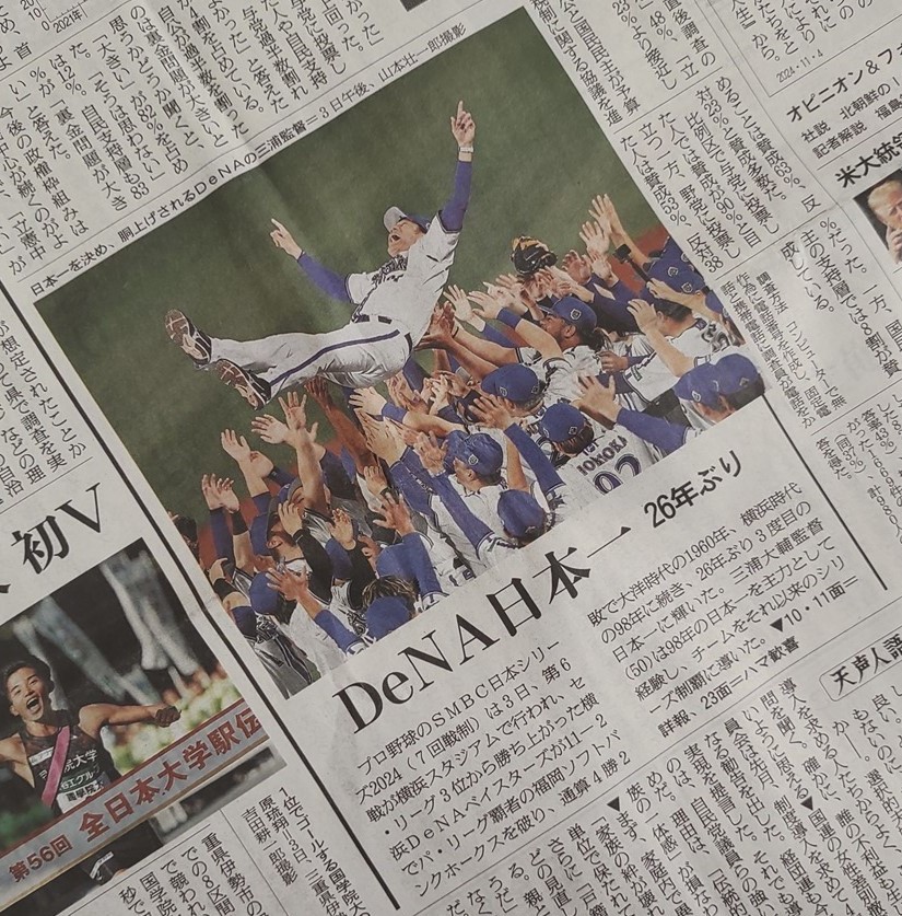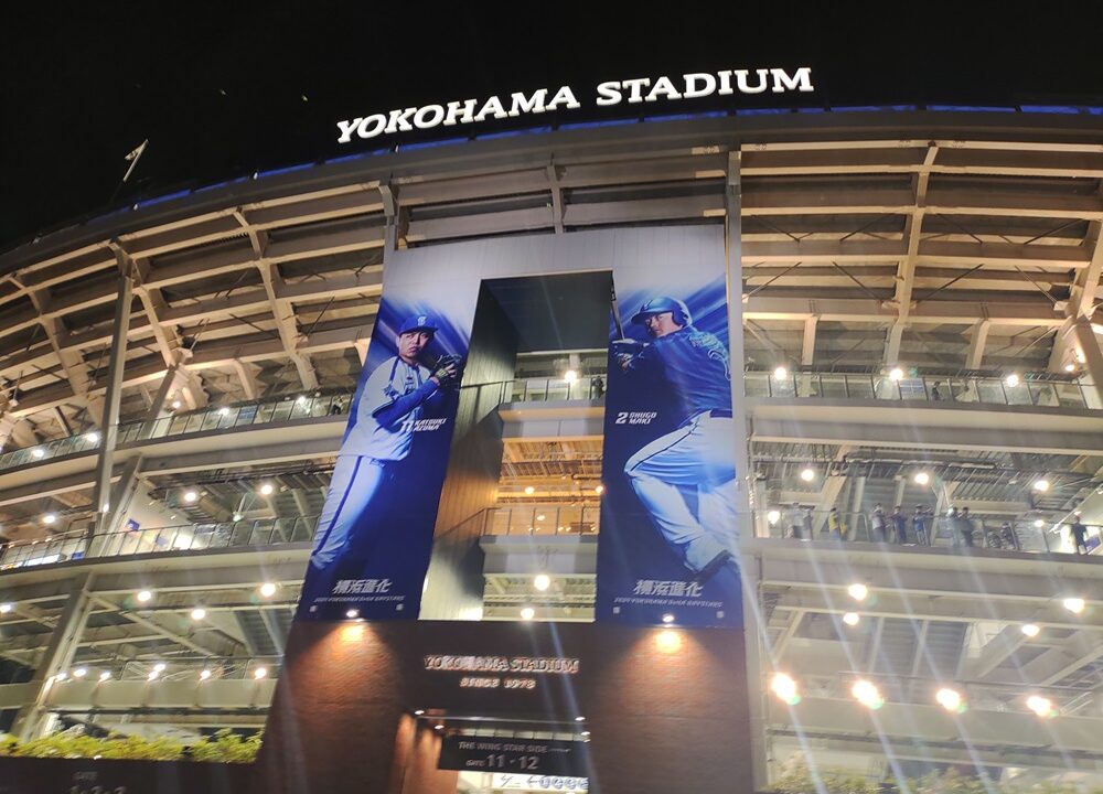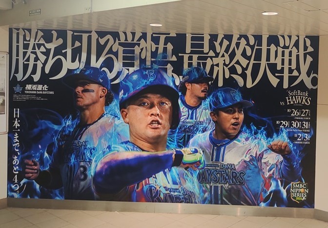 実はこの週末は仕事で仙台。11月2日土曜日はホテルで一人テレビ観戦か、と思いきやなんと雨で3日の日曜日に順延。もしかしたら仕事帰りに横浜スタジアムに寄れるかも。チケットはもっていないが場外で、という希望が見えてきた。 夕方17時に仕事を終えて18:30の新幹線に飛び乗り(実はこれもギリギリだった)、新幹線の中、Tverで観戦。しかし新幹線のWIFIは途切れ途切れ。トンネルが多い東北新幹線では楽天モバイルはめっぽう弱い。スポーツナビのテキスト速報と見比べつつの「観戦」。なんと勝っている! 4回に2点取られているけど勝っている! 5回に一挙7点追加で圧巻の9点差! これならベイスターズの投手陣全員の利き腕が折れない限り勝てるぞ!