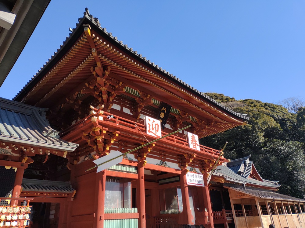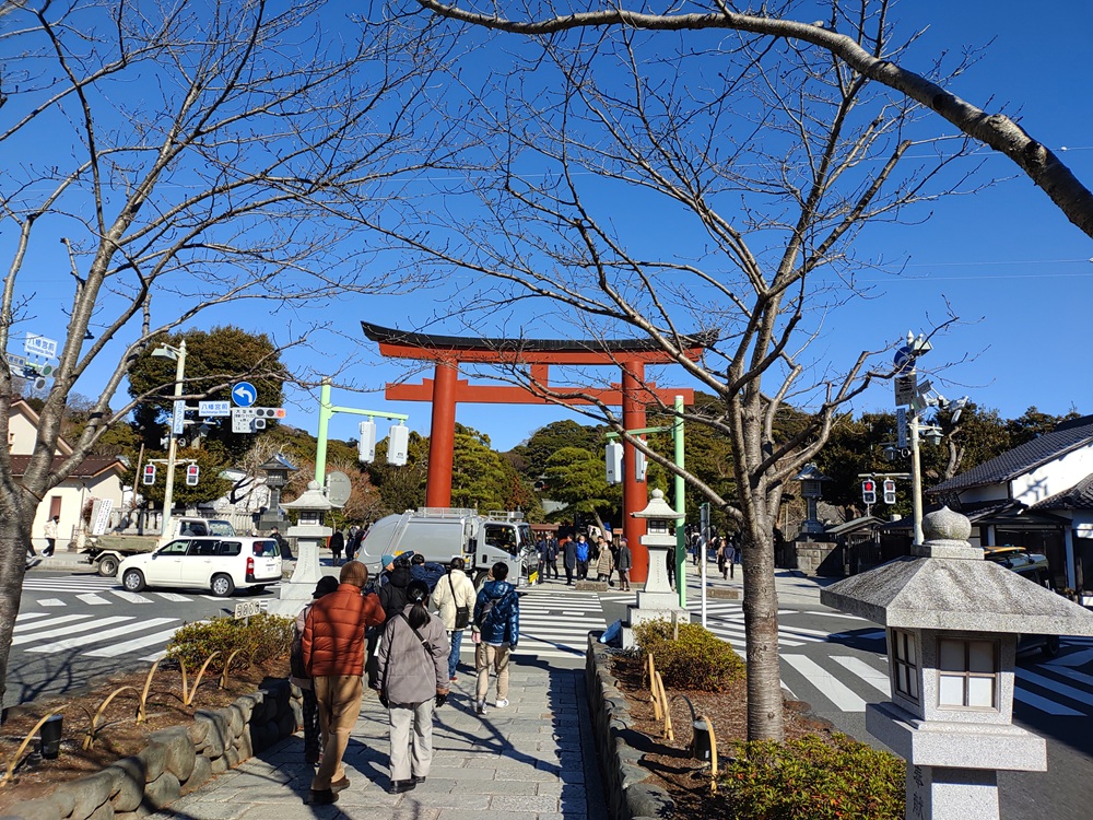 お正月三が日の鎌倉は大規模な車両規制があり、特に鶴岡八幡宮周辺に車両は入れない。人も大変なロープ規制があってなかなかお参りできないが松の内が過ぎた平日が最もスムーズにお参りできる
