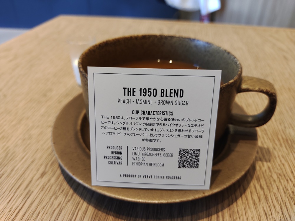 オーダーしたのは「THE 1950 BLEND」。普通のコーヒーとは全然違って苦み渋み一切なし。コーヒーにはミルクを入れないと飲めない質だがこのコーヒーには全く必要なかった