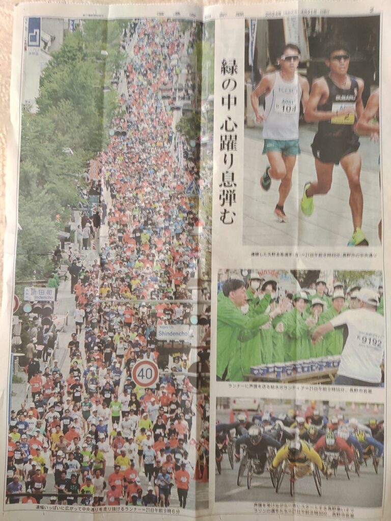 26年間でコースも少々変わっているが、長野市内を基本にしている点は変わりない。またこの大会が初回から一貫しているところでは制限時間が5時間という点。東京マラソンが始まる以前、おおむね一般公道をコースにしているフルマラソンの制限時間は5時間、という相場があった。ところが東京マラソン以降、様々な大会が制限時間を6時間以上に伸ばしている。理由は42.195㎞を5時間以上かけても完走したいという参加者も含めて取り込んでいく狙いがある。